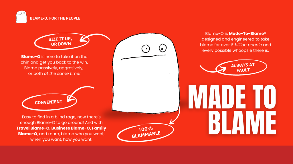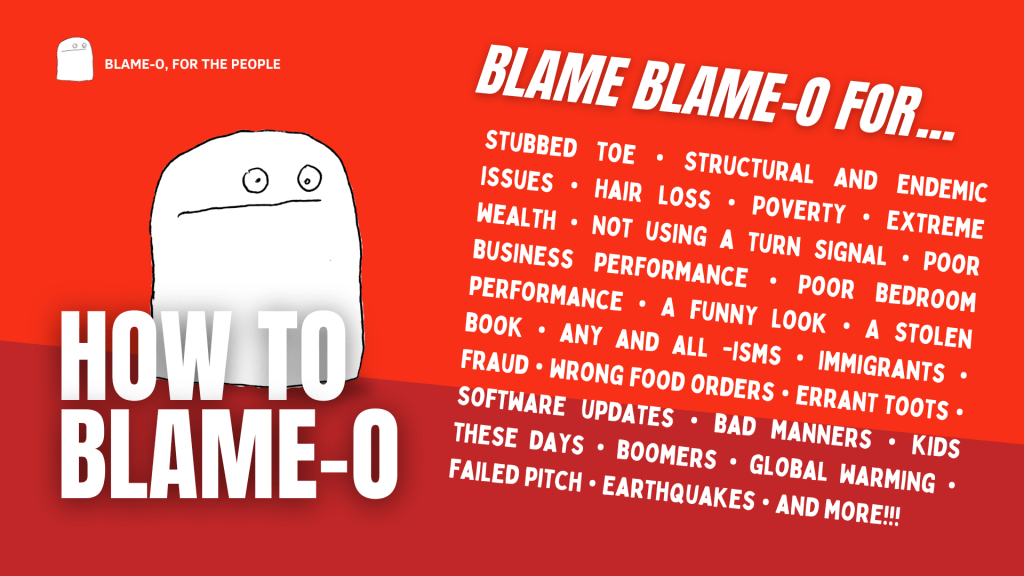 Blame-O is the titular antagonist behind all scapegoats throughout history. Wherever there was blame, there was Blame-O.